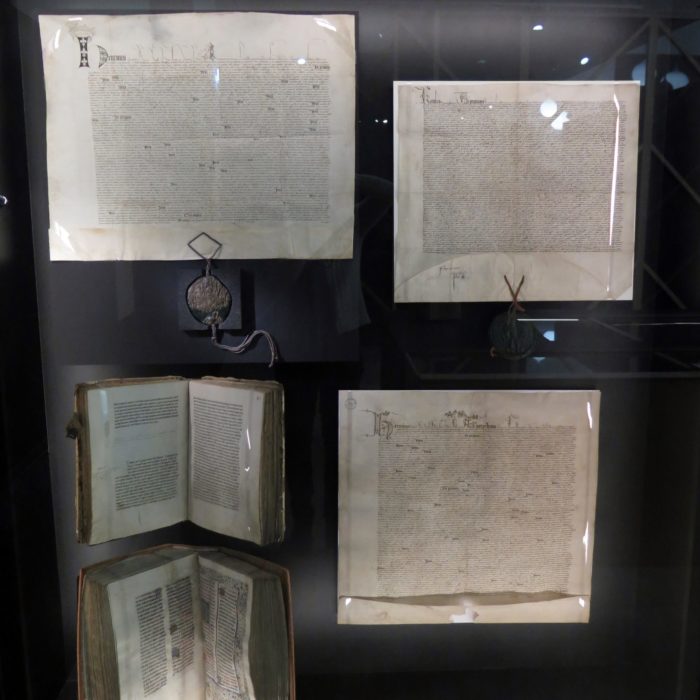 Réalisée avec l’appui d’un comité scientifique d’universitaires, de professeurs et de conservateurs du patrimoine, l’exposition présente propose de replacer l’histoire et le contexte historique du traité. Plus de 180 pièces prestigieuses sont présentées, avec de nombreux manuscrits du Moyen Âge, notamment les trois versions manuscrites du traité de Troyes, réunies pour la première fois depuis 300 ans (voir ci-contre).